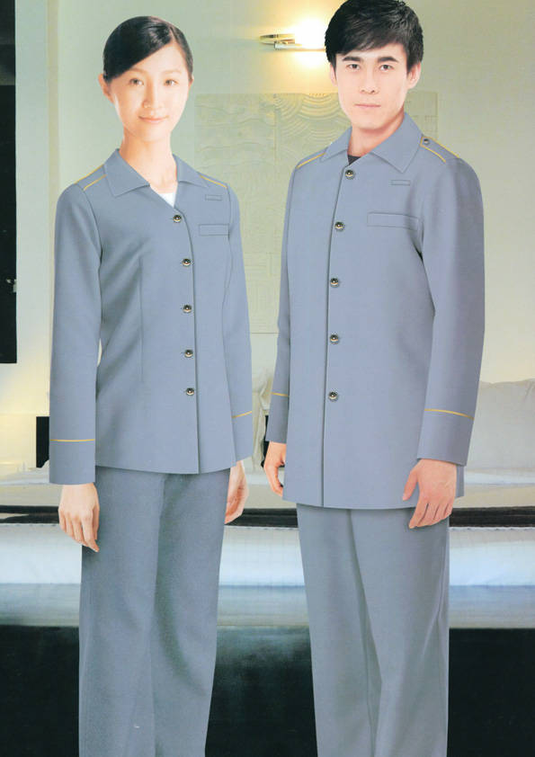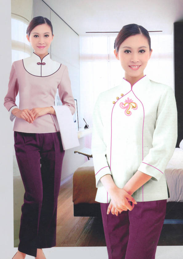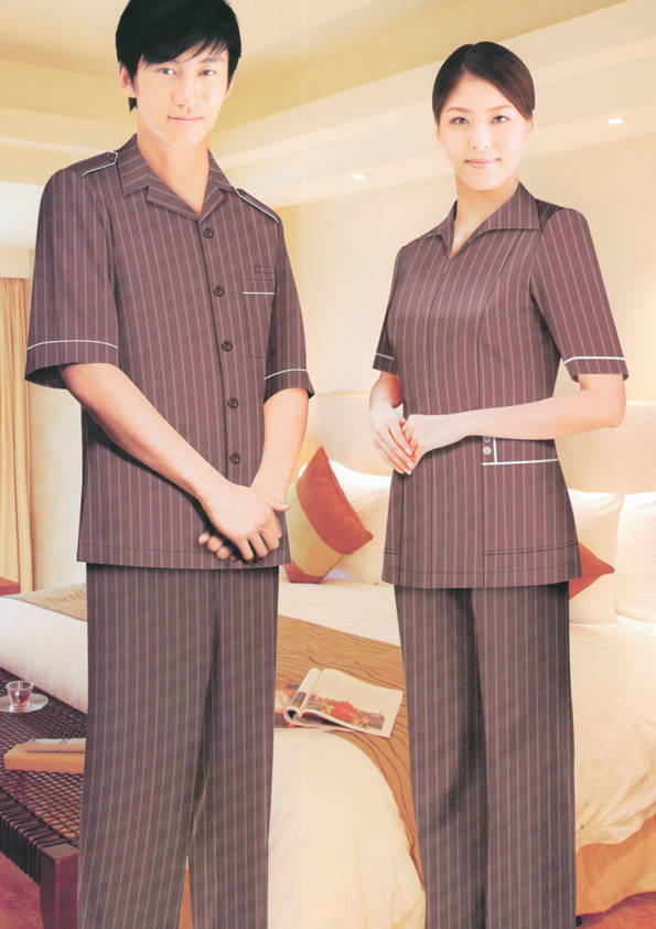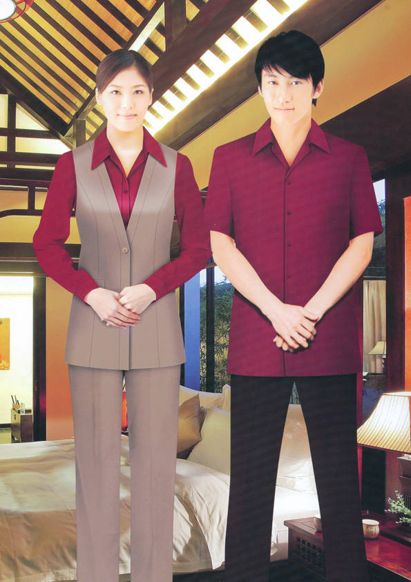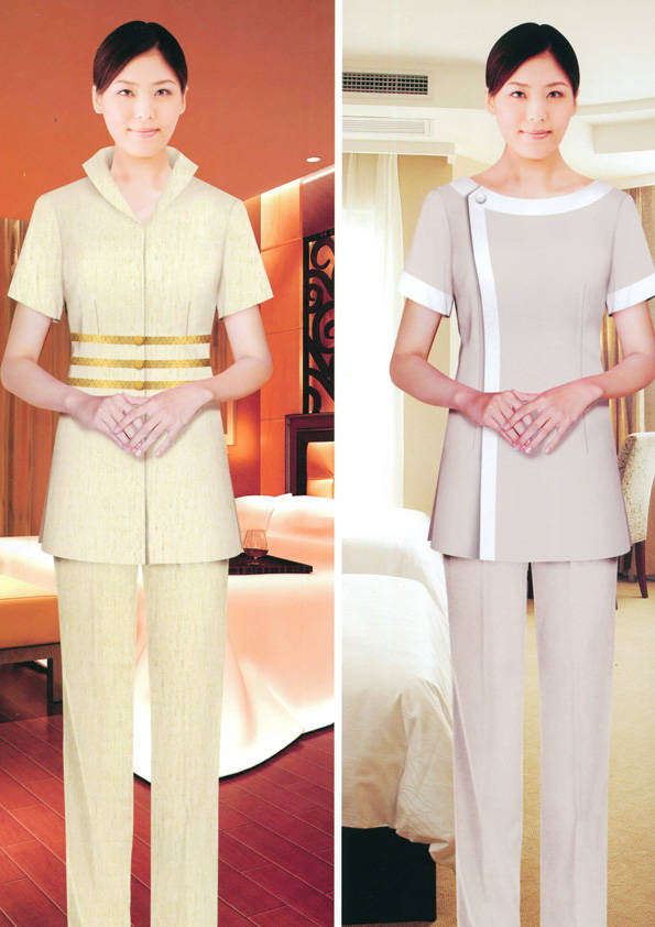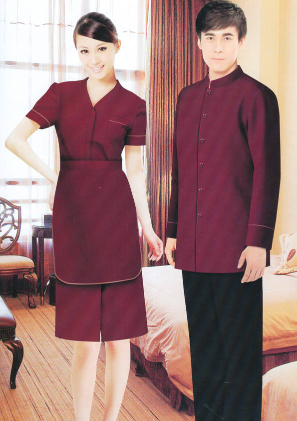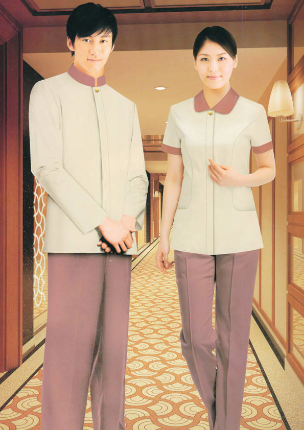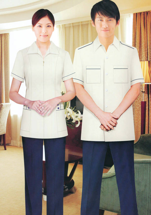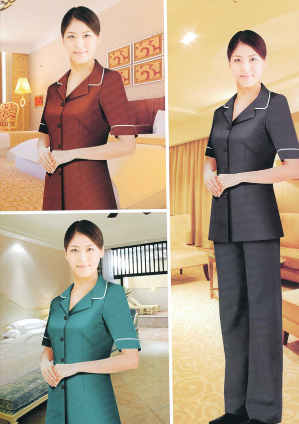客房服務員主要指為賓館或酒店的客房提供清潔及為住戶提供生活幫助的服務人員。其主要工作包括:清潔并檢查客房、補充用品、為客人提供服務 、清潔用品使用及保養、檢查客人遺留物及客房內貴重物品、確保工作區域的安全。保潔服裝應該注意以下幾個問題。1、服裝的色彩與酒店裝修相搭配。2、服裝的面料選定。3、服裝的款式一定要舒適,方便活動。4、服裝的樣式與酒店風格相搭配。5、服裝要成系列感。