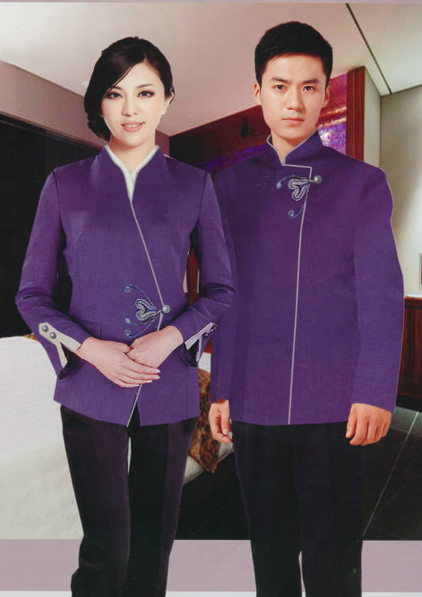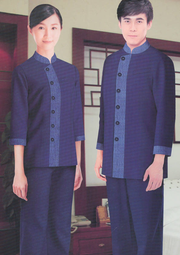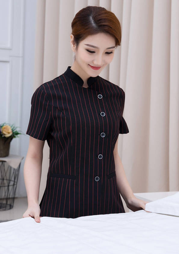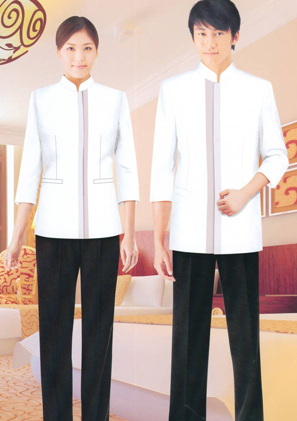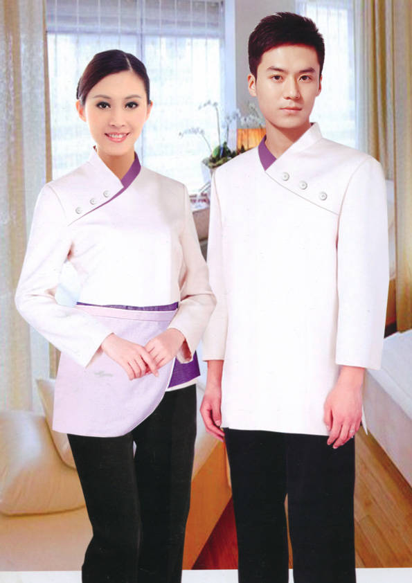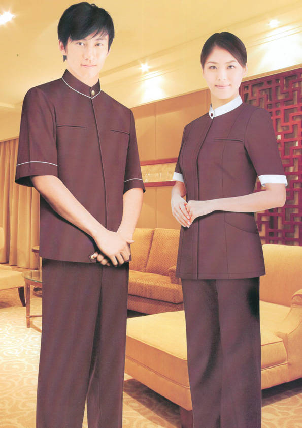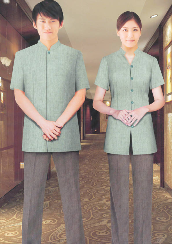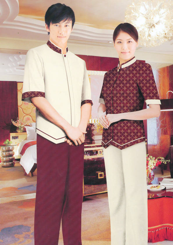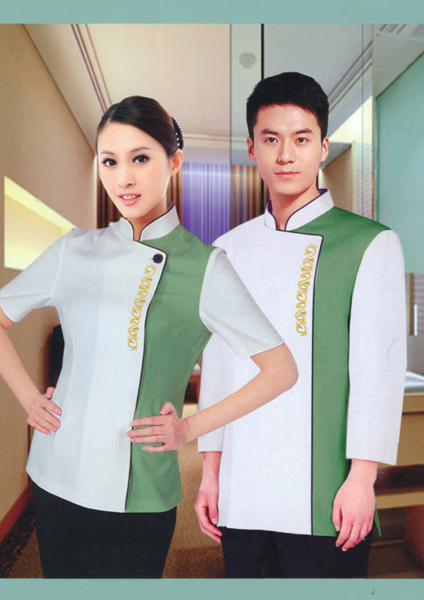 客房服務員主要指為賓館或酒店的客房提供清潔及為住戶提供生活幫助的服務人員。其主要工作包括:清潔并檢查客房、補充用品、為客人提供服務 、清潔用品使用及保養、檢查客人遺留物及客房內貴重物品、確保工作區域的安全。保潔服裝應該注意以下幾個問題。1、服裝的色彩與酒店裝修相搭配。2、服裝的面料選定。3、服裝的款式一定要舒適,方便活動。4、服裝的樣式與酒店風格相搭配。5、服裝要成系列感。