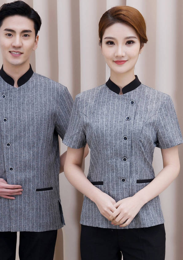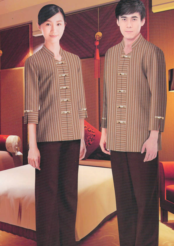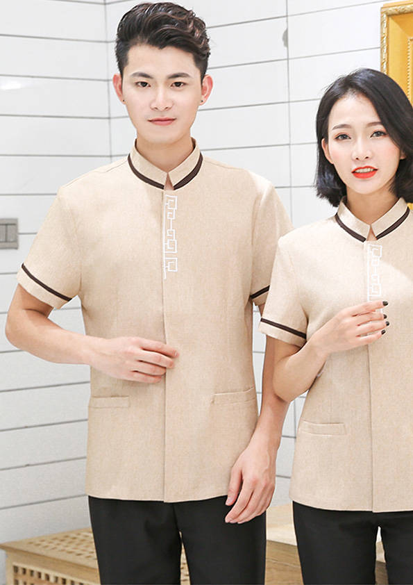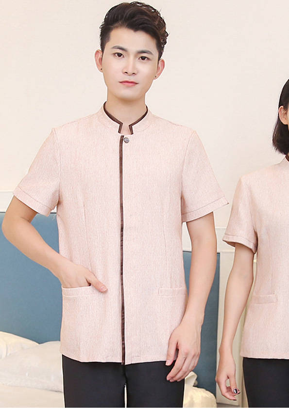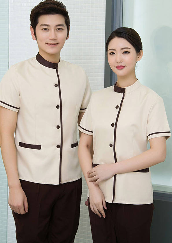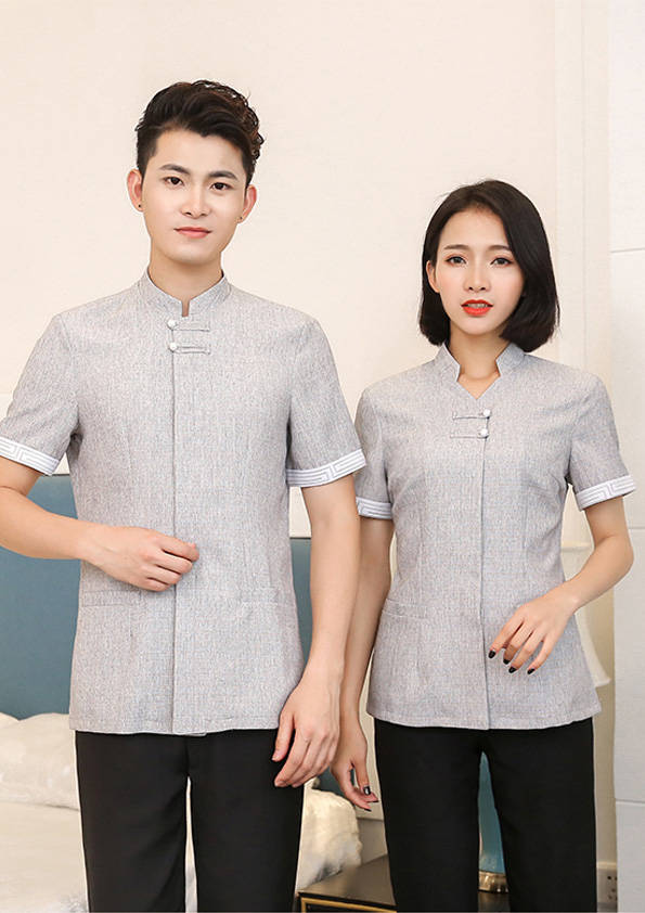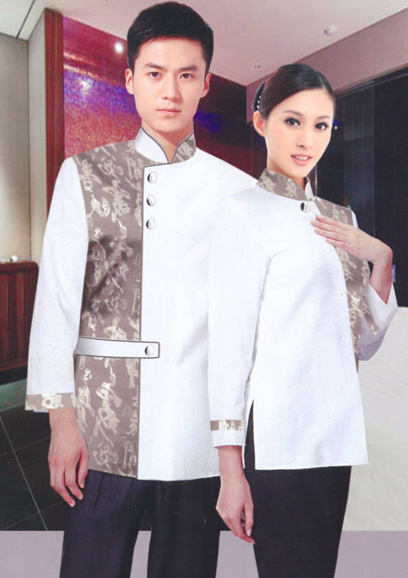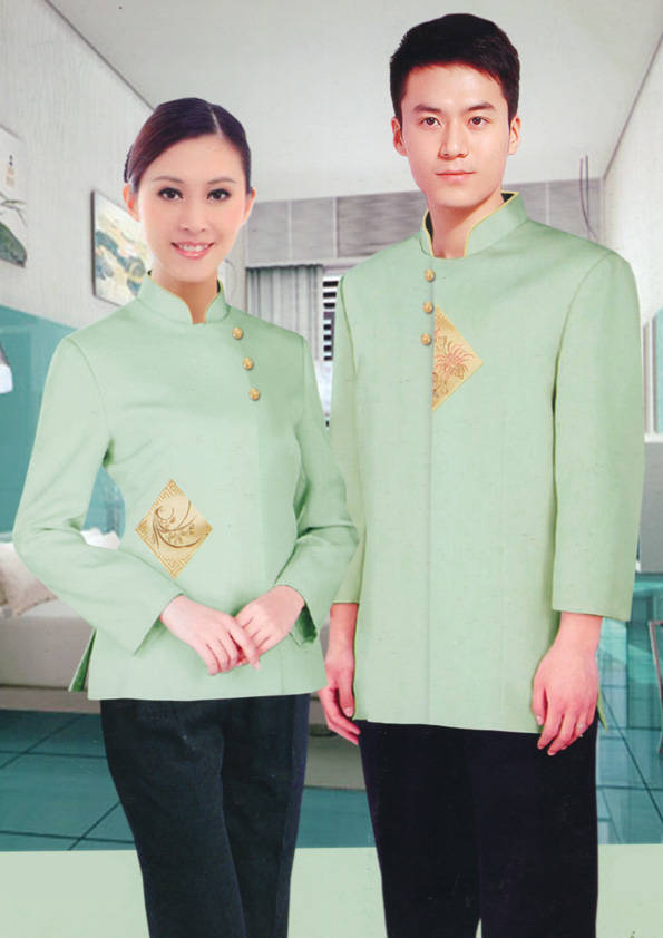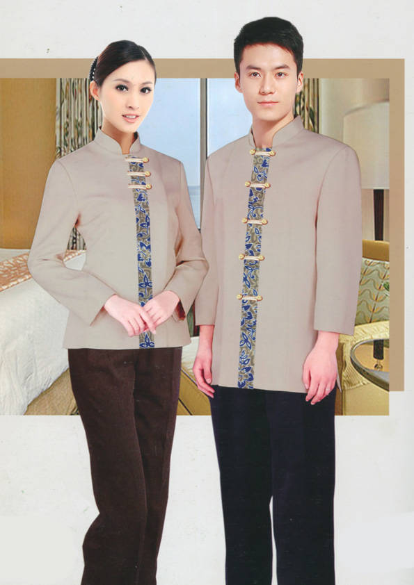 客房服務員主要指為賓館或酒店的客房提供清潔及為住戶提供生活幫助的服務人員。其主要工作包括:清潔并檢查客房、補充用品、為客人提供服務 、清潔用品使用及保養、檢查客人遺留物及客房內貴重物品、確保工作區域的安全。保潔服裝應該注意以下幾個問題。1、服裝的色彩與酒店裝修相搭配。2、服裝的面料選定。3、服裝的款式一定要舒適,方便活動。4、服裝的樣式與酒店風格相搭配。5、服裝要成系列感。