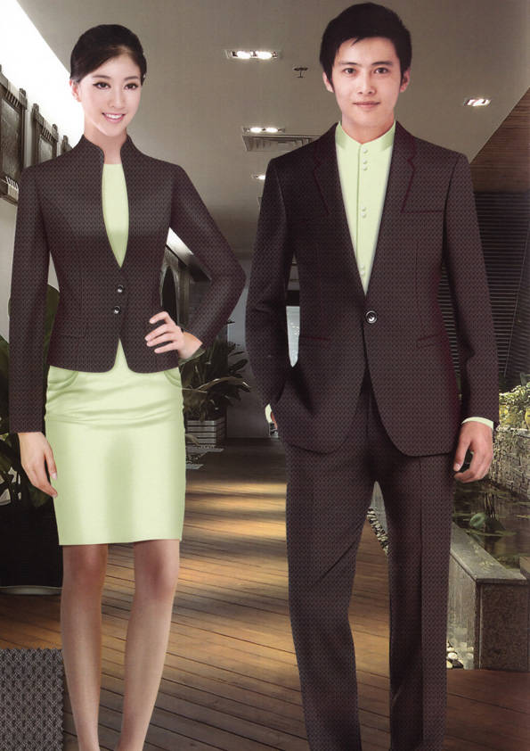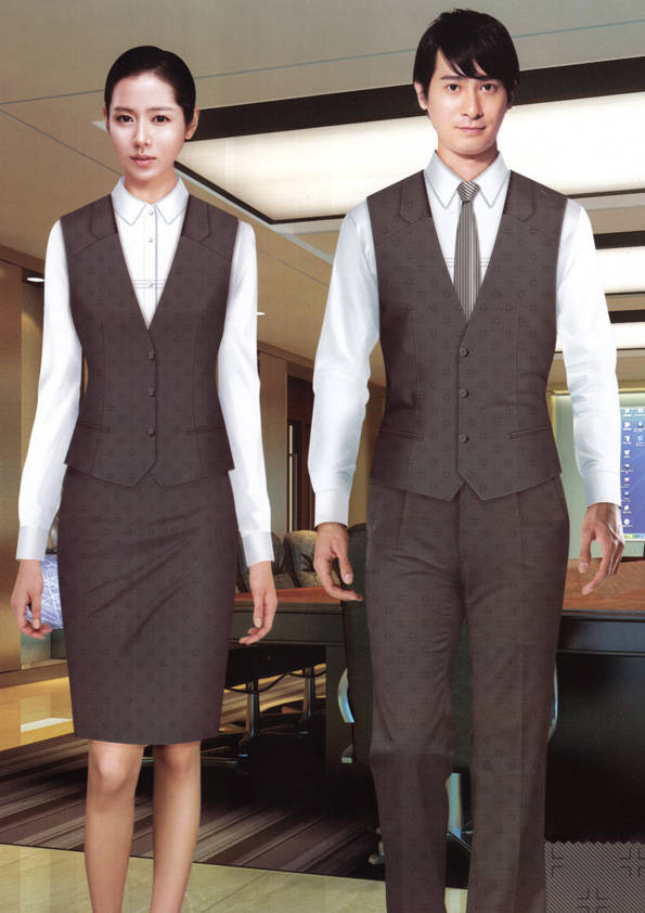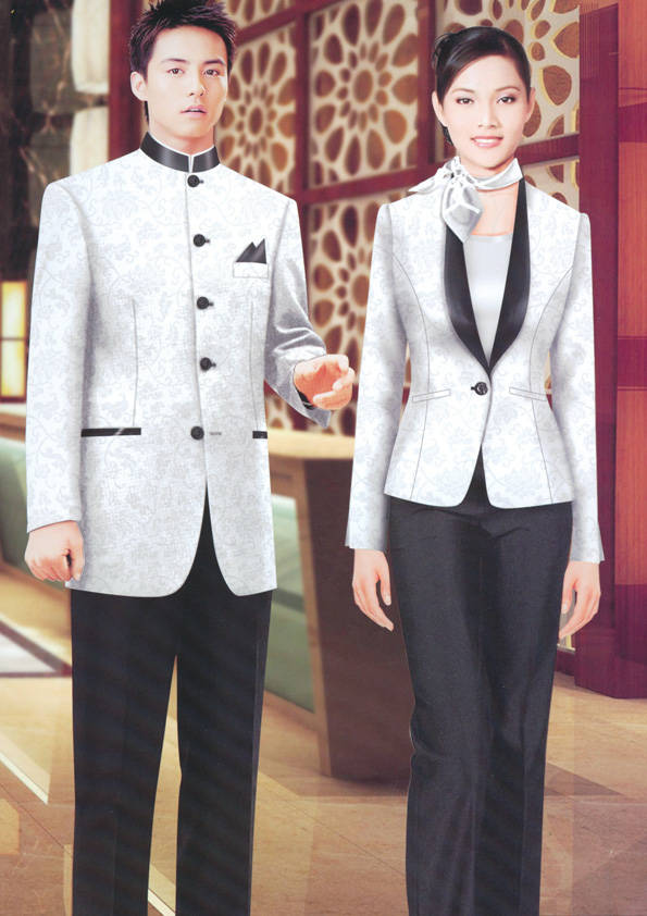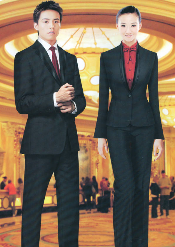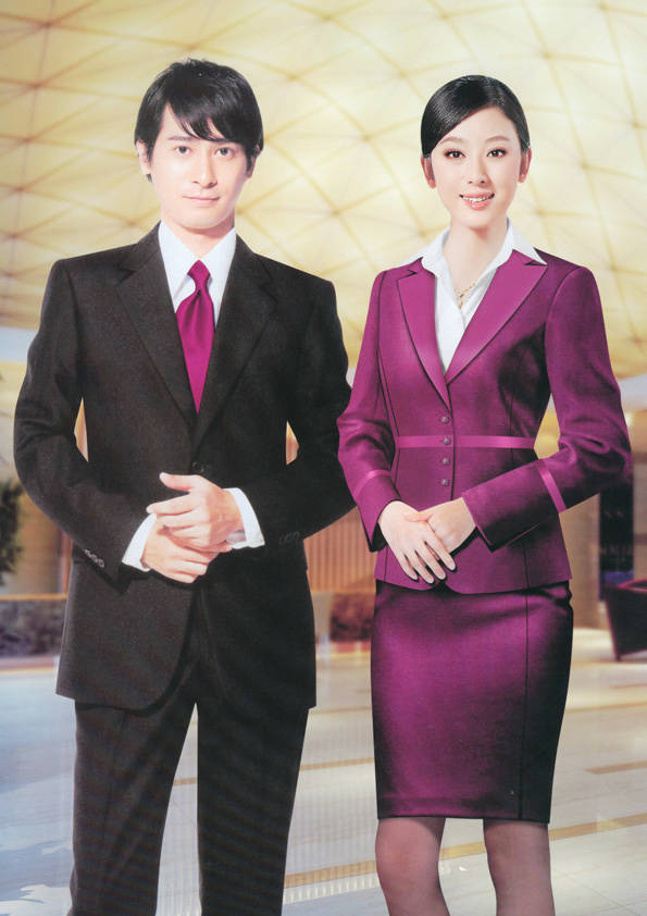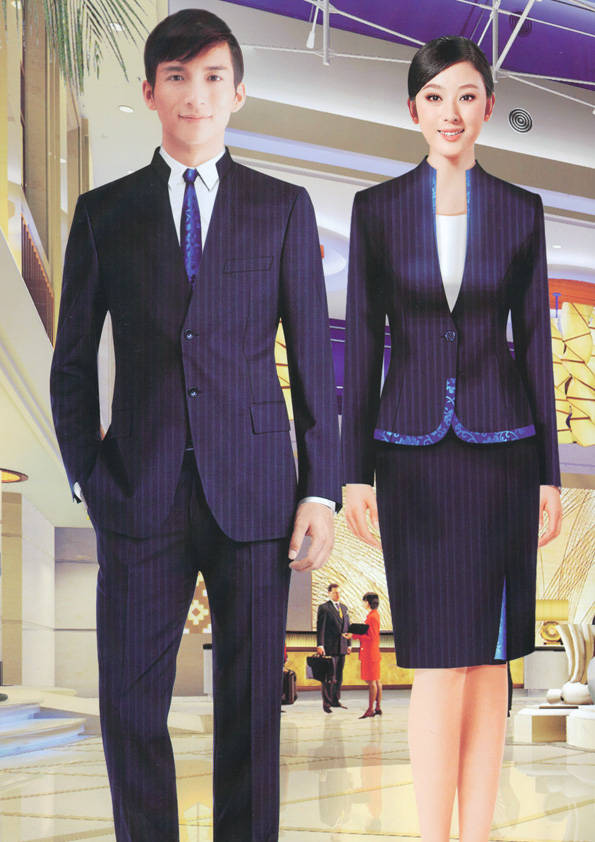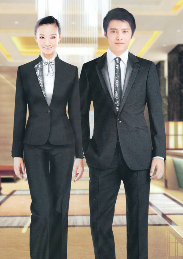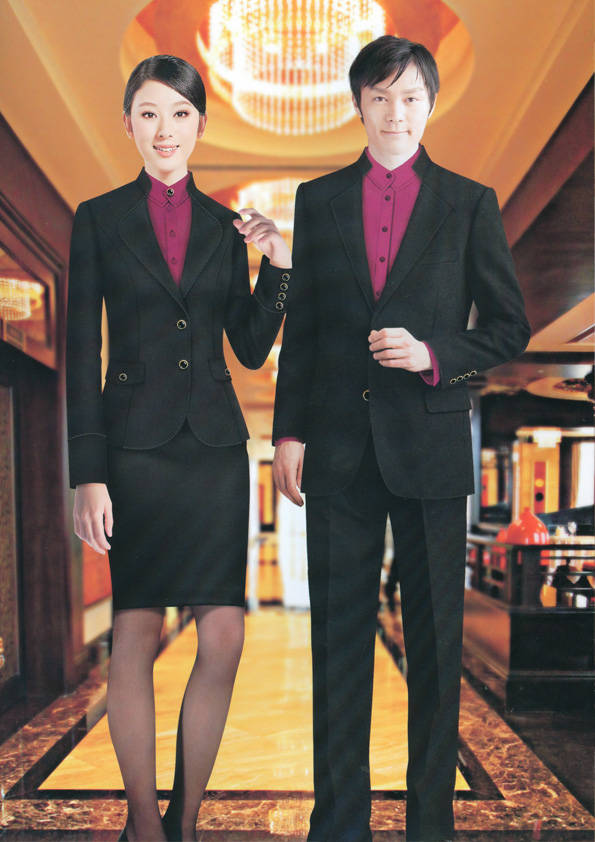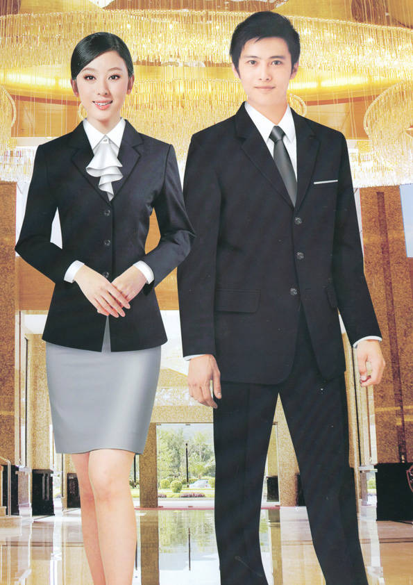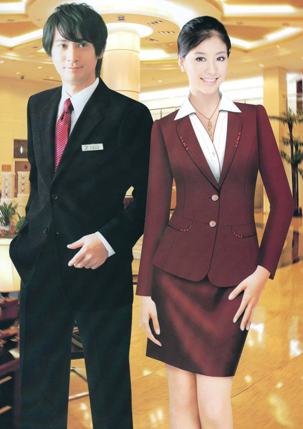 前廳部是酒店的神經中樞也叫做前臺,在客人心目中它是酒店管理機構的代表??腿巳胱〉怯浽谇皬d、離店結算在前廳,客人遇到困難尋求幫助找前廳,客人感到不滿時投訴也找前廳。 前廳工作人員的言語舉止將會給客人留下深刻的第一印象,最初的印象極為重要。所以前廳服裝也極為重要。前廳服裝應該注意以下幾個問題。1、服裝的色彩與酒店裝修相搭配。2、服裝的面料選定。3、服裝的款式一定要舒適,時尚大方。4、服裝的樣式與酒店風格相搭配。5、服裝要成系列感。