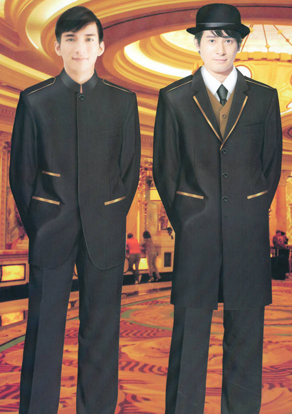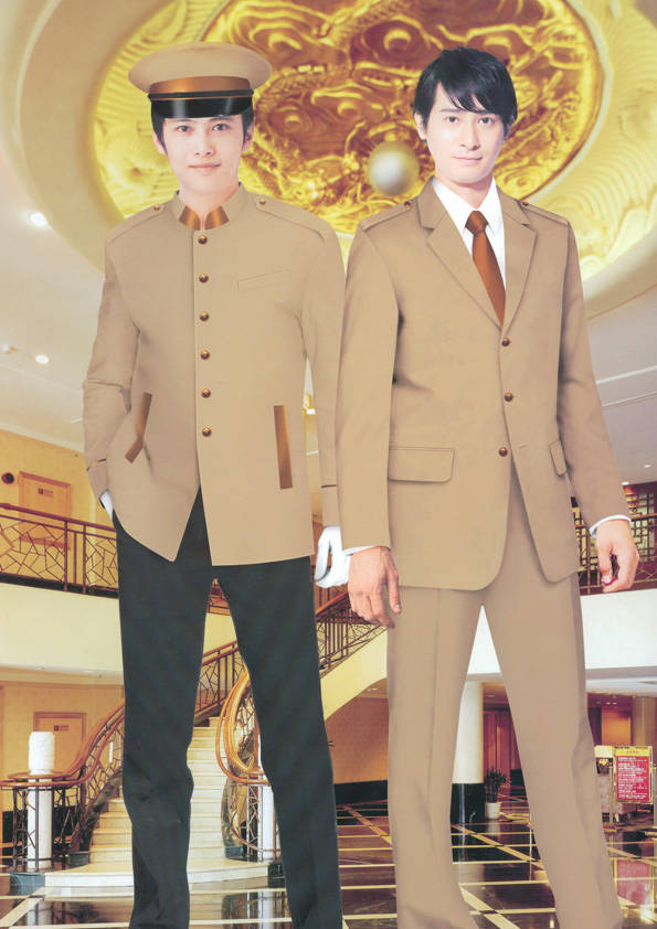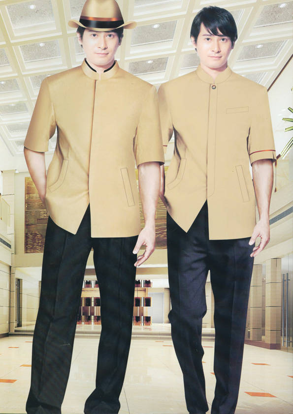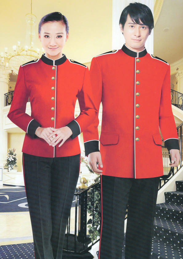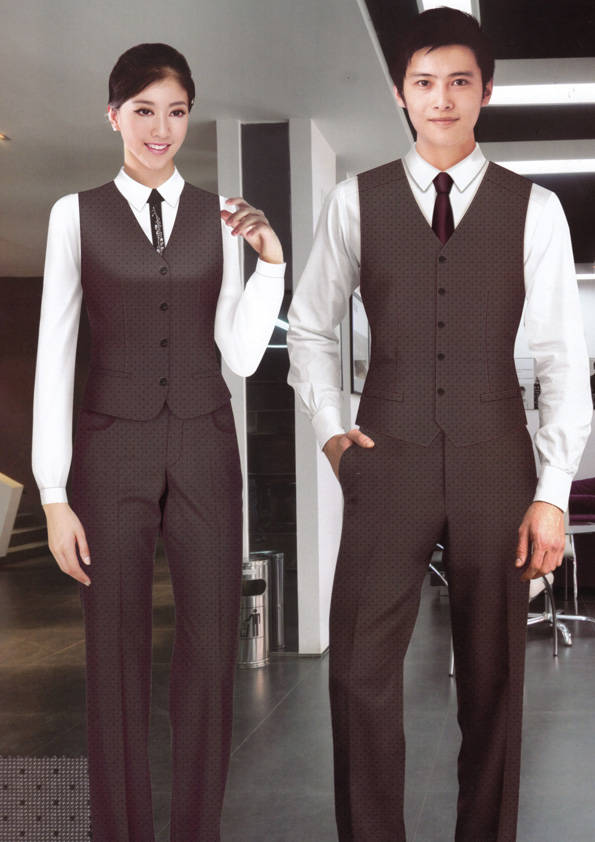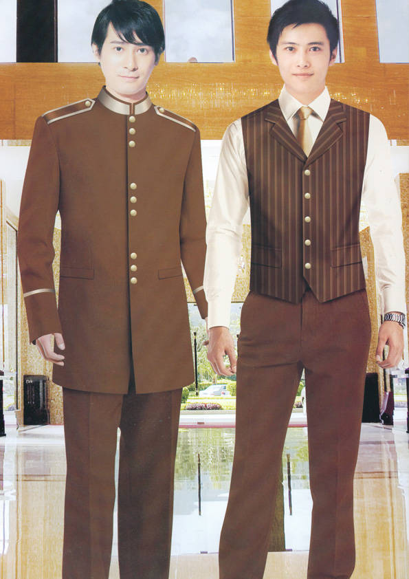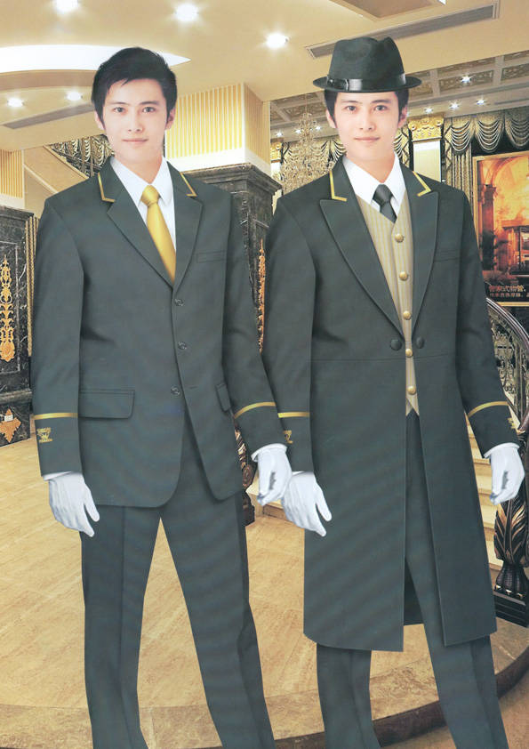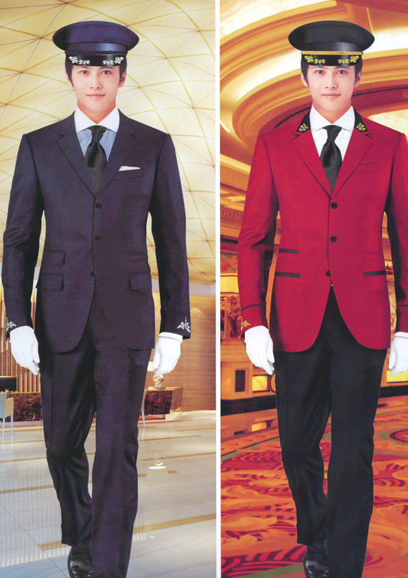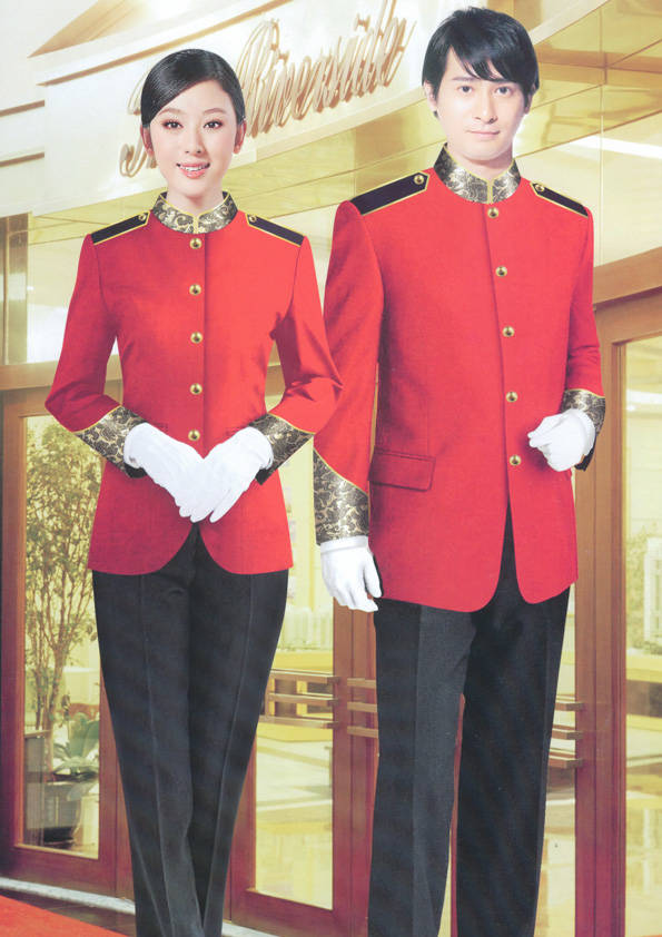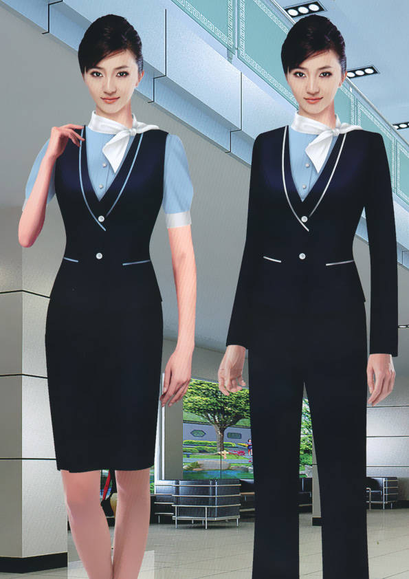前廳部是酒店的神經中樞也叫做前臺,在客人心目中它是酒店管理機構的代表??腿巳胱〉怯浽谇皬d、離店結算在前廳,客人遇到困難尋求幫助找前廳,客人感到不滿時投訴也找前廳。 前廳工作人員的言語舉止將會給客人留下深刻的第一印象,最初的印象極為重要。所以前廳服裝也極為重要。前廳服裝應該注意以下幾個問題。1、服裝的色彩與酒店裝修相搭配。2、服裝的面料選定。3、服裝的款式一定要舒適,時尚大方。4、服裝的樣式與酒店風格相搭配。5、服裝要成系列感。