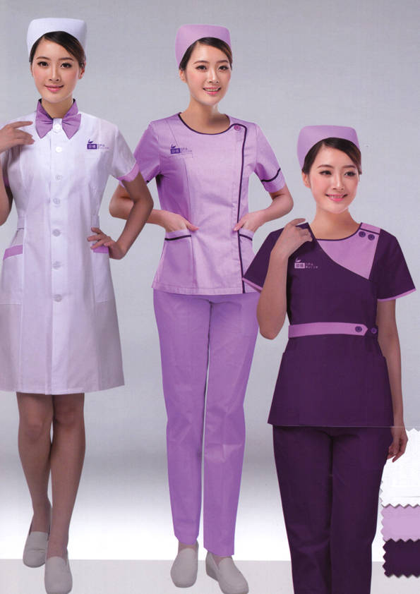 醫療美容服裝是屬于工作制服的一種,即是為工作而制定的衣服。根據實際的需求,結合使用特征、團隊文化、年齡結構、體型特征、穿著習慣等,從服裝的色彩、面料、款式、造型、搭配等多方面考慮。醫療美容行業工作服是與居民的日常消費關系密切的行業,他們的著裝要充分體現親切、自然、整潔的職業形象。該行業特點決定其應以經典時尚、簡潔適用的款式風格為主,并富有內涵及品位又能體現全新職業形象。